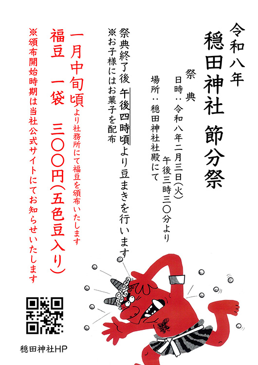 節分祭および豆まきは2月3日(火)に行います。